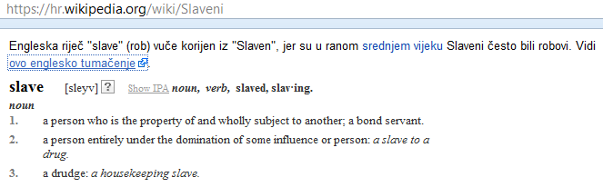 Riječ ‘Slaven’ potiče od latinske riječi ‘sclav’, što znači rob. (eng. slave)